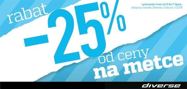 Przez cały weekend, tj. od 5 do 7 lipca, w salonach Diverse obowiązuje rabat -25%.