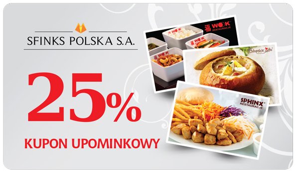 Ze zniżki będzie można skorzystać przy kolejnej wizycie w dowolnie wybranej restauracji Sphinx, WOOK lub Chłopskie Jadło.
