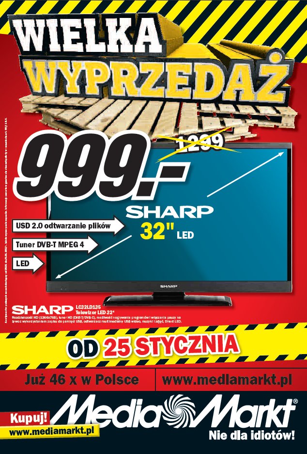 – telewizor Sharp LED 32” w cenie 999,- zł (taniej o 300 zł),