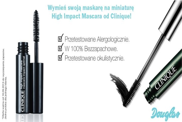 Chcesz otrzymać miniaturę maskary Clinique High Impact? Wystarczy, że do perfumerii Douglas przyniesiesz dotychczas używany tusz, a w zamian otrzymasz miniaturę nowej mascary Clinique.